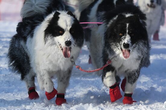 Dogs are seen during a sled dog race "Power of Siberia - 2021" (Sila Sibiri - 2021) in the village of Stepnoy, Novosibirsk region, Russia.22.02.2021#6469715