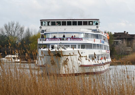 Aleksandr Suvorov river cruise ship is pictured near the Starocherkasskaya village, in the Rostov region, Russia.20.04.2021#6522768