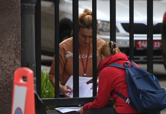People exit the Czech Republic Embassy in Moscow, Russia. Moscow announced its decision to expel 20 Czech diplomats in response to the expulsion of Russian diplomats from Prague and gave the Czech diplomatic staff time until the end of Monday to leave Russia. 19.04.2021#6521967