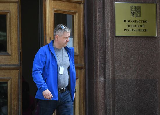 A man exits the Czech Republic Embassy in Moscow, Russia. Moscow announced its decision to expel 20 Czech diplomats in response to the expulsion of Russian diplomats from Prague and gave the Czech diplomatic staff time until the end of Monday to leave Russia. 19.04.2021#6521971