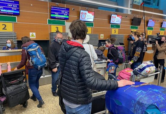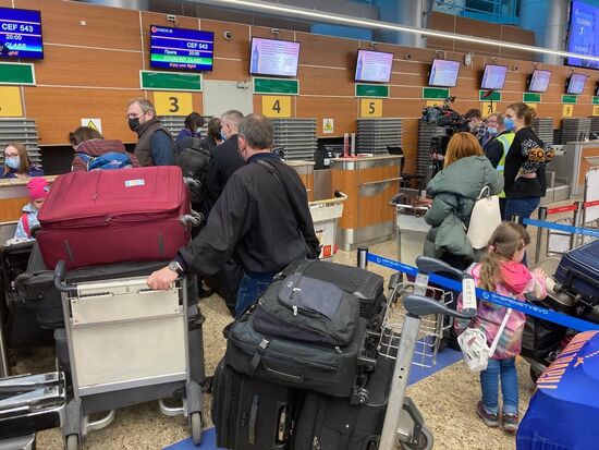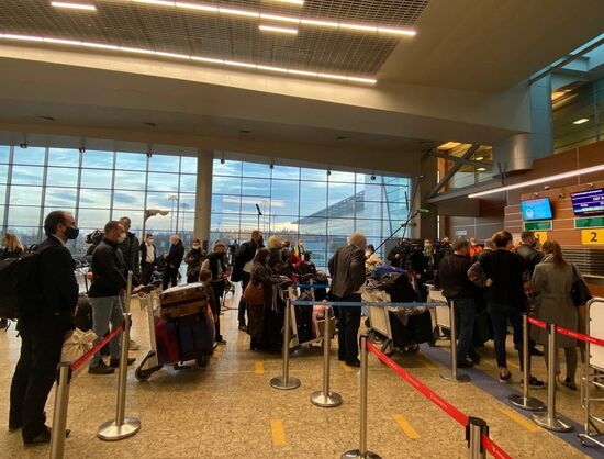 Czech Republic Embassy employees gather in line to register at Sheremetyevo Alexander S. Pushkin International Airport in Moscow, Russia. Moscow announced its decision to expel 20 Czech diplomats in response to the expulsion of Russian diplomats from Prague and gave the Czech diplomatic staff time until the end of Monday to leave Russia. 19.04.2021#6521984