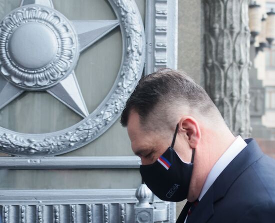 Czech Ambassador to Russia Vitezslav Pivonka leaves the Russian Foreign Ministry amid aggravation of bilateral relations and the mutual expulsion of embassy staff, in Moscow, Russia.22.04.2021#6524281
