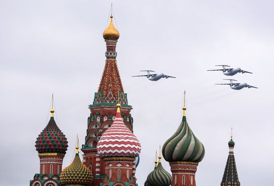 Ilyushin IL-76 military transport aircraft fly during the Victory Day military parade due to mark the 76th anniversary of the victory over Nazi Germany in World War II, in Moscow, Russia.09.05.2021#6539485