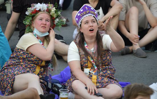 Russia's fans watch a broadcasting of the Euro 2020 group stage soccer match at the football village, in Saint Petersburg, Russia.21.06.2021#6579157