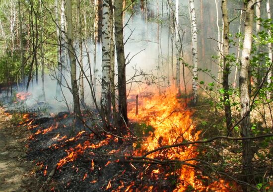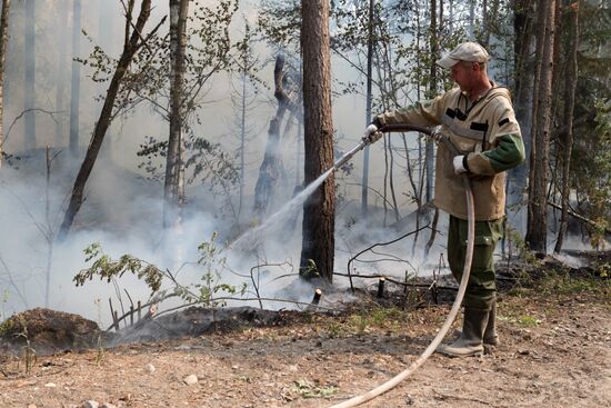 Employees of Russian Aerial Forest Protection Service extinguish wildfire in the forest in the Pryazhinsky District of Karelia, Russia. 21.07.2021#6602119