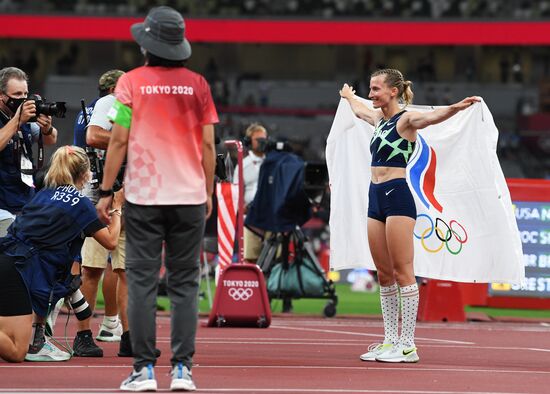 Russian Olympic Committee's Anzhelika Sidorova is seen after winning a silver medal at the women's pole vault final during the athletics event at the Tokyo 2020 Olympic Games at Olympic Stadium in Tokyo, Japan.05.08.2021#6619101