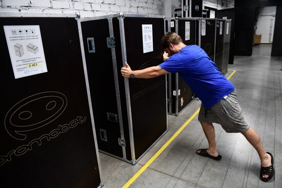 Robo-C humanoid robots, packed for shipping are seen in a workshop of the Promobot company in Perm, Russia. Promobot is the largest service robotics manufacturer in Northern and Eastern Europe.05.08.2021#6619303