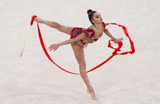 Russian Olympic Committee's Dina Averina performs with the ribbon in the rhythmic gymnastics individual all-around final at the Tokyo 2020 Olympic Games at Ariake Gymnastics Centre in Tokyo, Japan.07.08.2021#6621451