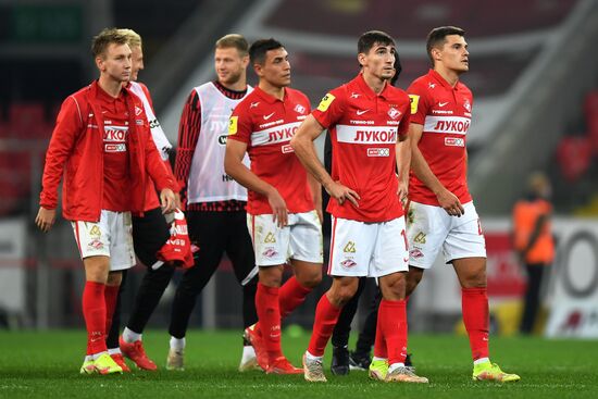 Spartak's players celebrate team's 3-1 victory at the Russian Premier-League soccer match between Spartak Moscow and Khimki, in Moscow, Russia.11.09.2021#6649072