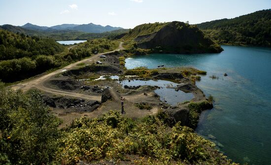 A general view shows Biruzovie (Turquoise) lakes of the Novikovsky coal mine on the site of quarries where coal was mined during the Soviet Union period, on the Pacific Island of Sakhalin, Russia.09.09.2021#6656019