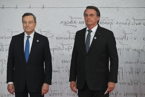 Italian Prime Minister Mario Draghi welcomes Brazilian president Jair Bolsonaroas he arrives for the G20 Leaders' Summit at La Nuvola Congress Centre in Rome, Italy.30.10.2021#6685289