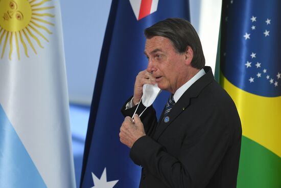 Brazilian president Jair Bolsonaroas arrives for the G20 Leaders' Summit at La Nuvola Congress Centre in Rome, Italy.30.10.2021#6685291