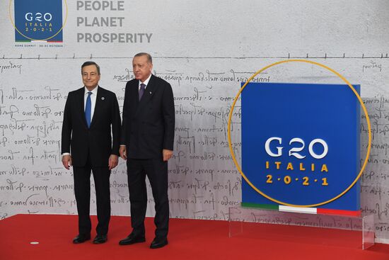 Italian Prime Minister Mario Draghi welcomes Turkish President Recep Tayyip Erdogan as he arrives for the G20 Leaders' Summit at La Nuvola Congress Centre in Rome, Italy.30.10.2021#6685307