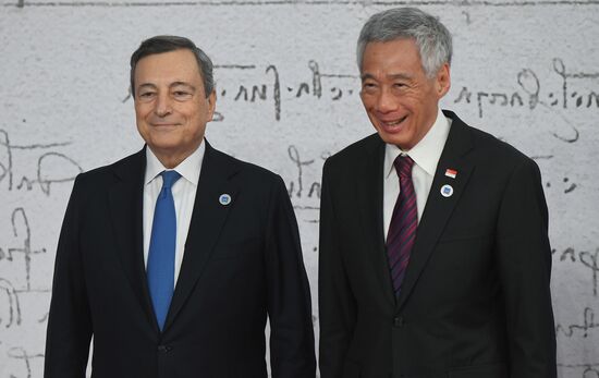 Italian Prime Minister Mario Draghi welcomes Singaporean Prime Minister Lee Hsien Loong as he arrives for the G20 Leaders' Summit at La Nuvola Congress Centre in Rome, Italy.30.10.2021#6685341