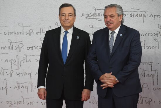 Italian Prime Minister Mario Draghi welcomes Argentinian President Alberto Fernandez as he arrives for the G20 Leaders' Summit at La Nuvola Congress Centre in Rome, Italy.30.10.2021#6685386