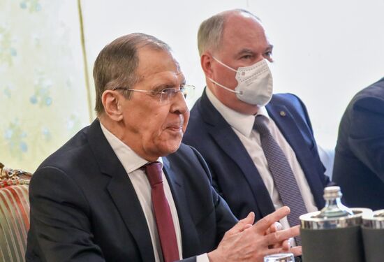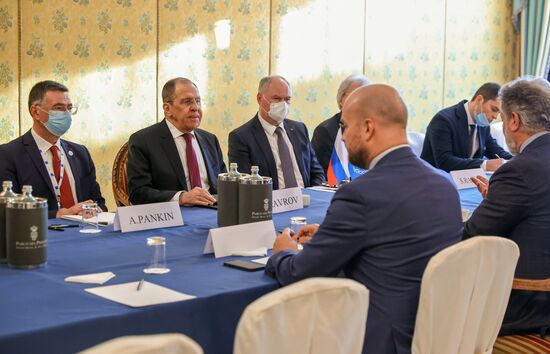 In this handout photo released by the Russian Foreign Ministry, Russian Foreign Minister Sergey Lavrov attends a meeting with World Health Organisation Director-General Tedros Adhanom during the sidelines of the 2021 G20 Rome summit, in Rome, Italy. Editorial use only, no archive, no commercial use.30.10.2021#6685817