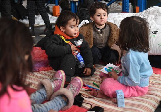 Children are seen at the migrants' temporary accommodation equipped in the logistics centre Bruzgi, at the Bruzgi-Kuznica Bialostocka border crossing on the Belarusian-Polish border, in Grodno region, Belarus. Migrants from the Middle East and North Africa trapped in Belarus have converged on the border with Poland, where razor wire fences and Polish troops have repeatedly blocked their entry.17.11.2021#6698222