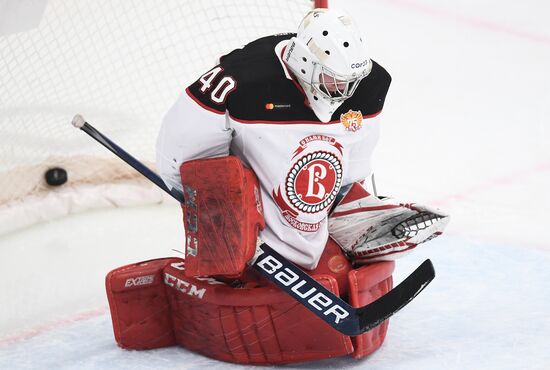 Vityaz's goaltender Daniel Audette is seen during the Kontinental Hockey League ice hockey match between CSKA Moscow and Vityaz Moscow region, in Moscow, Russia.07.01.2022#6737420