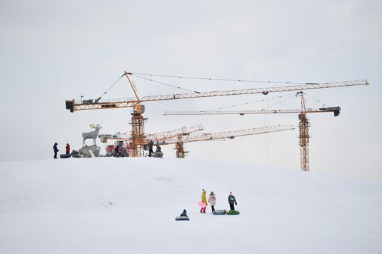 Snow figures are seen at the Snow and Ice Festival on the Pushkin Embankment of Gorky Park, in Moscow, Russia.08.02.2022#8108444