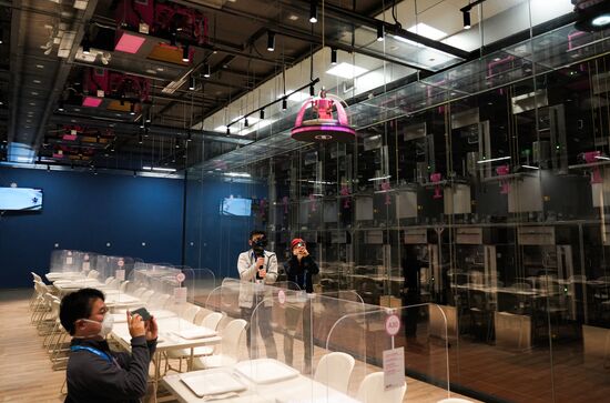 A robotic food delivery system is seen in the cafeteria of the Main Media Center, ahead of Beijing 2022 Winter Olympics, in Beijing, China.01.02.2022#6751995