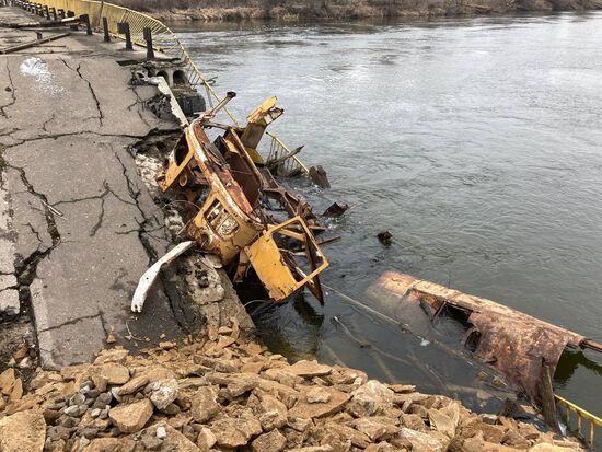 A view shows a crossing over Seversky Donets river in the Luhansk region, Luhansk People's Republic. Servicemen of LPR People's Militia crossed Seversky Donets river and established control over the settlement of Trokhizbenka in the Luhansk region.27.02.2022#8127720