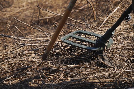 A Russian serviceman defuses the territory of the village of Verkhnetoretskoye, in Donetsk region, DPR.26.03.2022#8152599