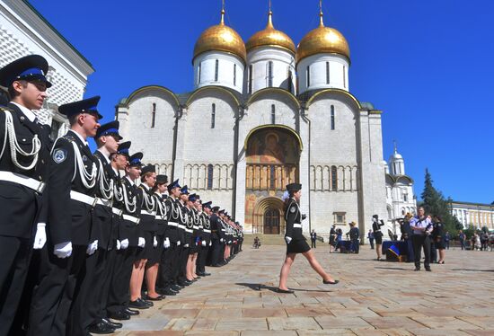 A Russian Federal Guard Service cadet receives a certificate during a graduation ceremony on Sobornaya Square of the Moscow Kremlin, Russia.23.06.2022#8222117
