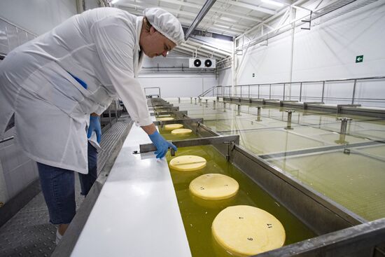 An employee works at the cheese production workshop of the Novator dairy plant in the town of Dzhankoi, Crimea, Russia.12.07.2022#8235174