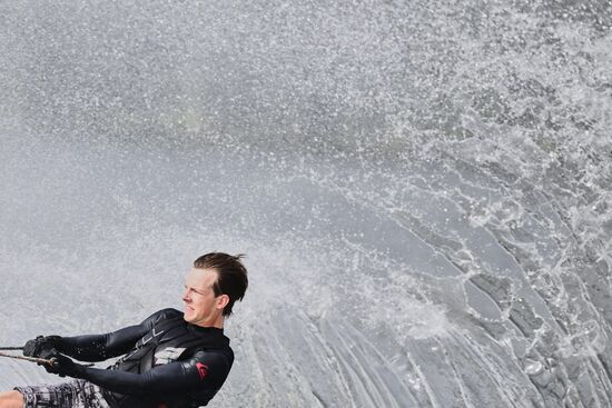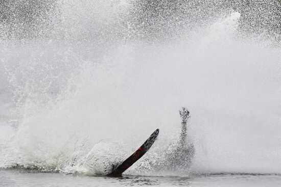 An athlete competes in the men's slalom event during the Russian Water Skiing Championship at the Ruzino reservoir in Moscow region, Russia.20.08.2022#8256258