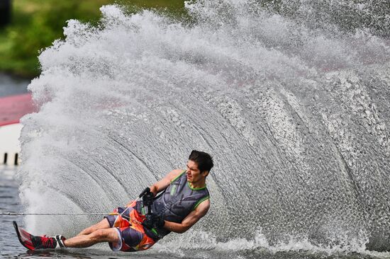 An athlete competes in the men's slalom event during the Russian Water Skiing Championship at the Ruzino reservoir in Moscow region, Russia.20.08.2022#8256238