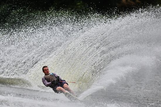 An athlete competes in the men's slalom event during the Russian Water Skiing Championship at the Ruzino reservoir in Moscow region, Russia.20.08.2022#8256242