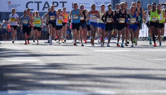 A runner wearing a costume of Spider-man makes his way during the Moscow marathon, in Moscow, Russia.18.09.2022#8277348