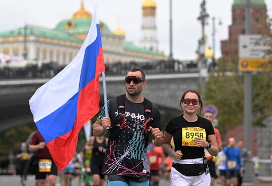 Russian athlete Marina Kovaleva finishes during the Moscow marathon, in Moscow, Russia.18.09.2022#8277227