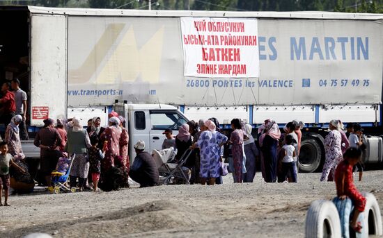 People unload humanitarian aid for refugees in the village of Boz-Adyr, Kyrgyzstan. Large-scale clashes on the Kyrgyz-Tajik border flared up on September 14. Both sides agreed to a ceasefire several times, however the agreements were not respected and mutual shelling continued.19.09.2022#8278059
