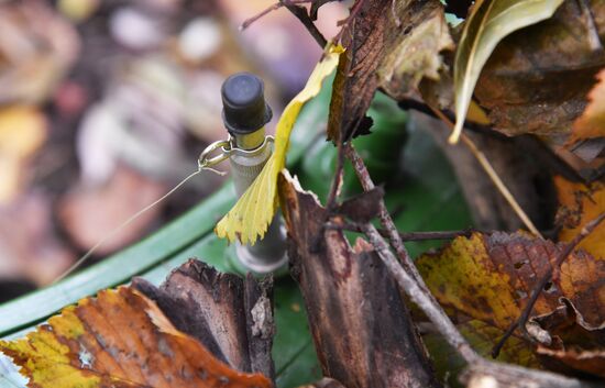 A sapper of Russian private military company Wagner Group installs a MON-50 anti-personnel mine, as Russia's military operation in Ukraine continues, in Luhansk People's Republics, Russia.09.10.2022#8293002