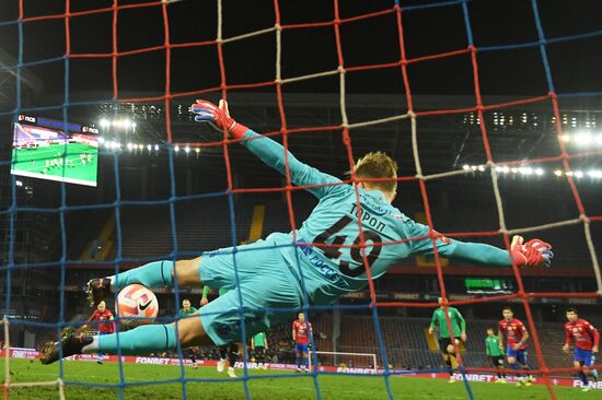 CSKA's goalkeeper Vladislav Torop defends his goal during the Russian Cup soccer match between CSKA Moscow and Torpedo Moscow, in Moscow, Russia.19.10.2022#8298949