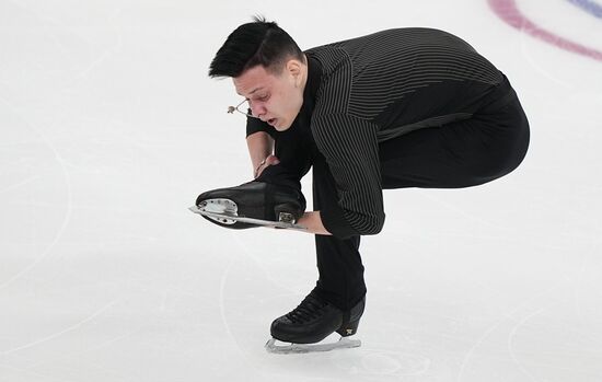 Daniil Samsonov performs his free skating program during the first stage of the Russian Grand Prix Figure Skating event at the Megasport Sport Palace in Moscow, Russia.23.10.2022#8302836
