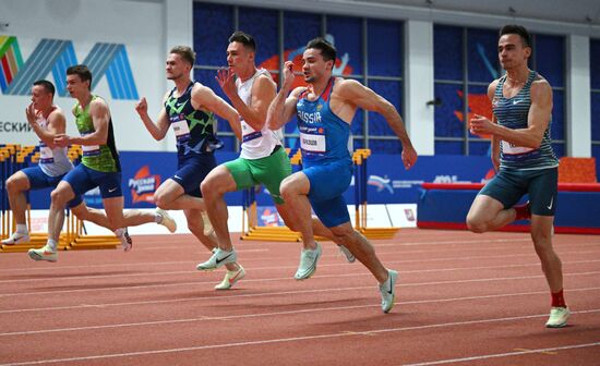 Athletes compete in the men's 60m hurdles final event at the Russkaya Zima (Russian Winter) Athletics competition in Moscow, Russia.10.02.2023#8368779