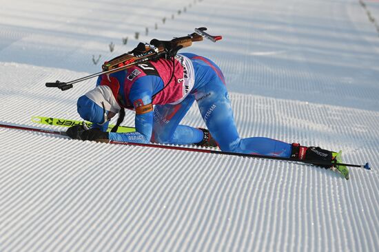 Natalia Gerbulova reacts after winning the bronze medal in the women's 10 km pursuit event of the Russian Biathlon Cup in Chaikovsky, Perm region, Russia.18.02.2023#8373282