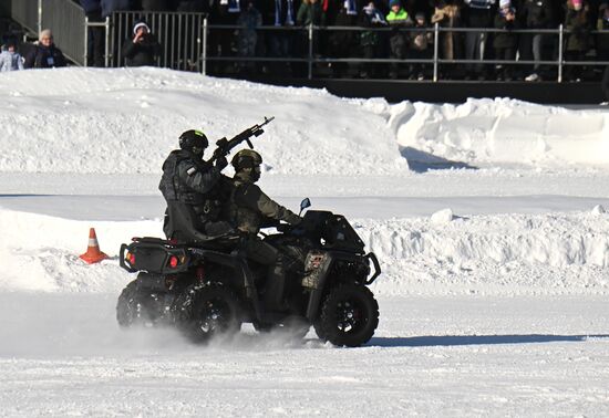 Participants perform during a high-speed maneuvering competition held by the Special Purpose Garage (GON) of the Russian Federal Guard Service (FSO) in Moscow region, Russia.23.02.2023#8376569