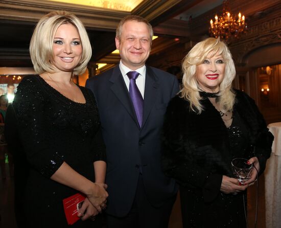 From left: Singer Maria Maksakova, Head of Moscow's Department of Culture Sergei Kapkov and actress Irina Miroshnichenko at a birthday reception for The Hollywood Reporter's Russian edition at the Casta Diva restaurant.04.04.2013#1436181