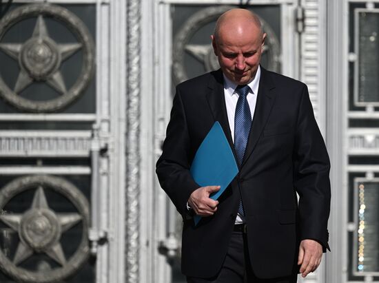 Polish Ambassador to Russia Jacek Schlyadewski leaves the Russian Foreign Ministry headquarters in Moscow, Russia. Schlyadewski was summoned to the Russian Foreign Ministry on May 2 in connection with the forcible seizure of the school building in Warsaw.02.05.2023#8423587