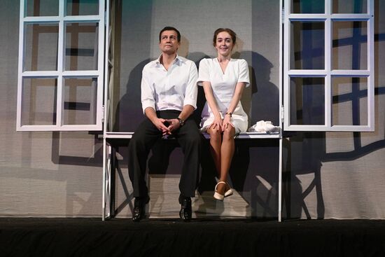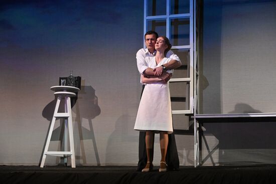Actors Alexander Klukvin as Fyodor Ivanovich and Varvara Shatalova as Veronika perform during a media preview of the Viktor Rozov's play ''The Cranes Are Flying" directed by Andrei Zhitinkin at the Maly Theatre in Moscow, Russia.05.05.2023#8425436