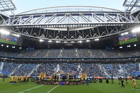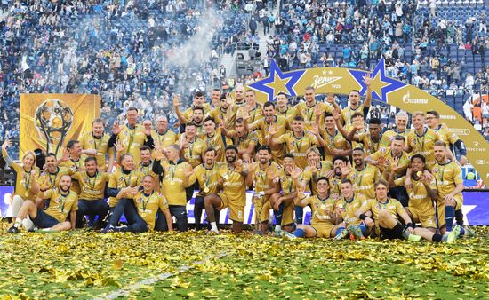 Zenit's players celebrate their victory in the Russian Premier League during the awarding ceremony, in St. Petersburg, Russia.13.05.2023#8432025