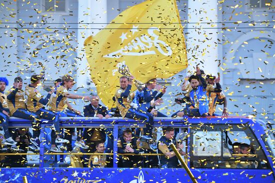 Zenit's players tour the city aboard a bus as they celebrate their victory in the Russian Premier League, in St. Petersburg, Russia.13.05.2023#8432173