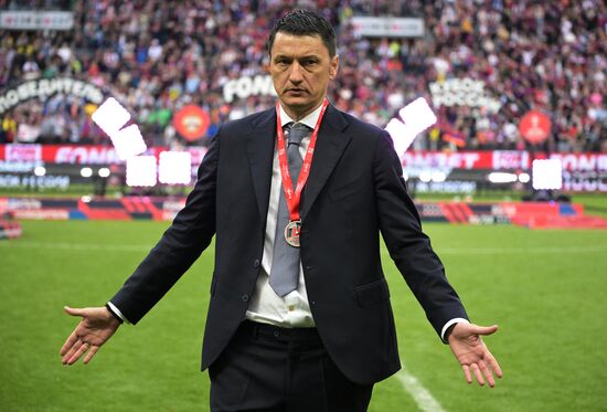 Krasnodar's head coach Vladimir Ivic reacts during the awarding ceremony after the Russian Cup soccer super final match between CSKA Moscow and Krasnodar, in Moscow, Russia.11.06.2023#8453459