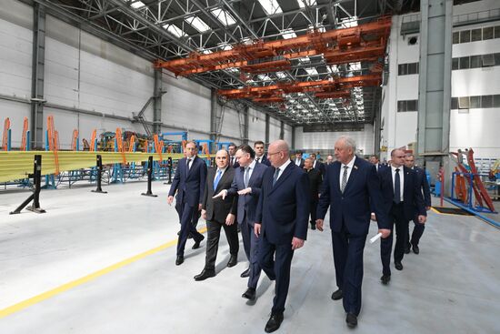 Russian Prime Minister Mikhail Mishustin, accompanied by Finance Minister Anton Siluanov and head of the Republic of Tatarstan Rustam Minnikhanov, visits the Kazan Aviation Factory named after S.P. Gorbunov, a Tupolev company affiliate and part of Rostec, in Kazan, Republic of Tatarstan, Russia.22.06.2023#8465326