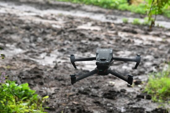 A quadrocopter under the control of a Russian serviceman of the 200th motorized infantry unit of the Southern group of troops is seen in the course of Russia's military operation in Ukraine, in the outskirts of Soledar, Donetsk People's Republic, Russia.27.06.2023#8470298