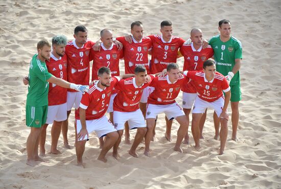 Russia's players pose for a photo before the Beach Soccer Nations Cup match between Russia and the United Arab Emirates, in St.Petersburg, Russia.21.07.2023#8482368