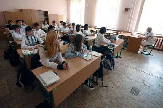 Pupils attend a lesson following a ceremony marking the beginning of the new academic year at the gymnasium No 6 in Donetsk, Donetsk People's Republic, Russia.01.09.2023#8507317